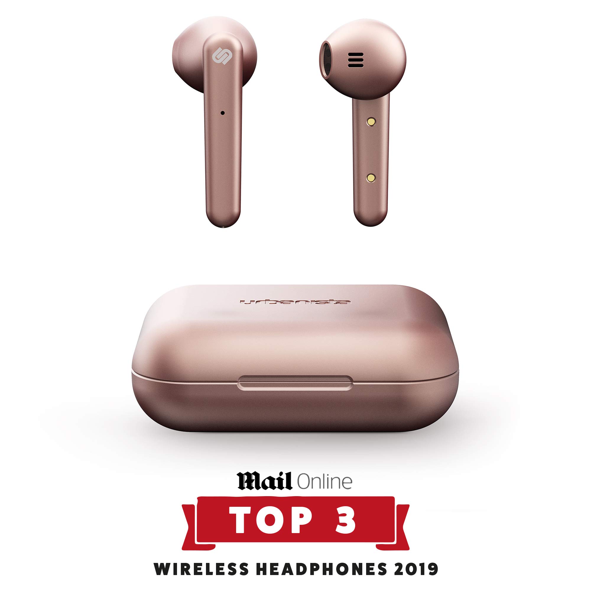 Urbanista Stockholm Véritable écouteurs sans Fil 14H d'autonomie Bluetooth 5.0 avec étui de Chargement, Commandes tactiles & écouteurs à Double Micro Compatibles avec Android et iOS - Or Rose